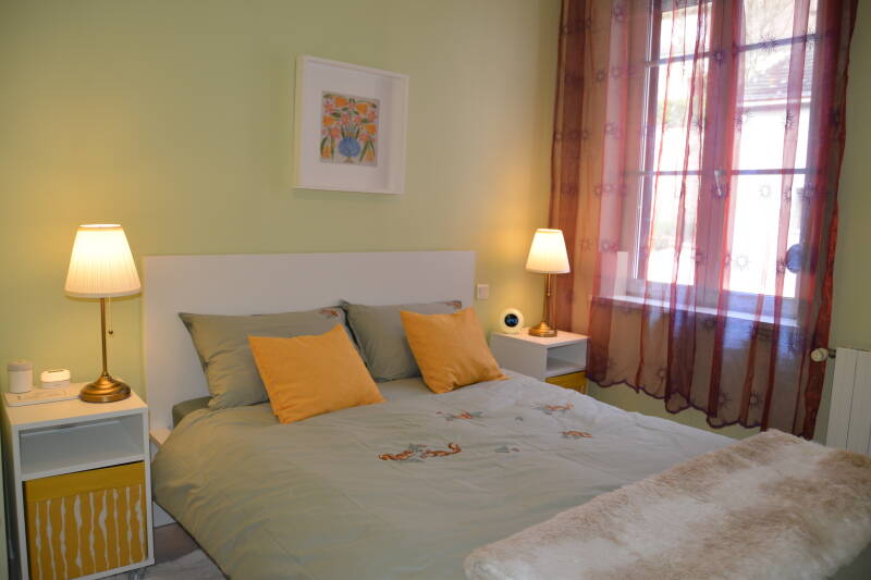 La chambre est équipée d’un lit double confortable (140x1900), de deux tables de nuit accompagnées de deux lampes de chevet vintage qui apportent une touche de charme. Vous y trouverez également un petit dressing pour vos affaires.