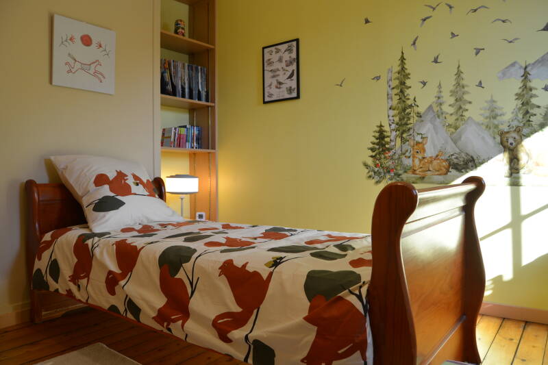 Spécialement conçue pour les familles et les plus jeunes, la chambre Écureuil offre une décoration enfantine, ludique et accueillante.
